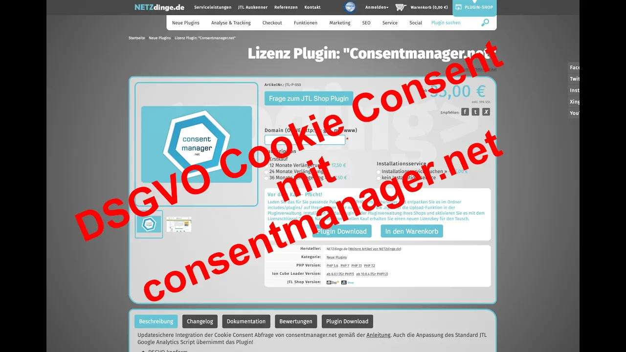 Das Consentmanager.de by NETZdinge.de Plugin bindet das Script Consentmanager.de in Deinen JTL Shop 5 ein. Du musst das also nun nicht mehr selbst tun.