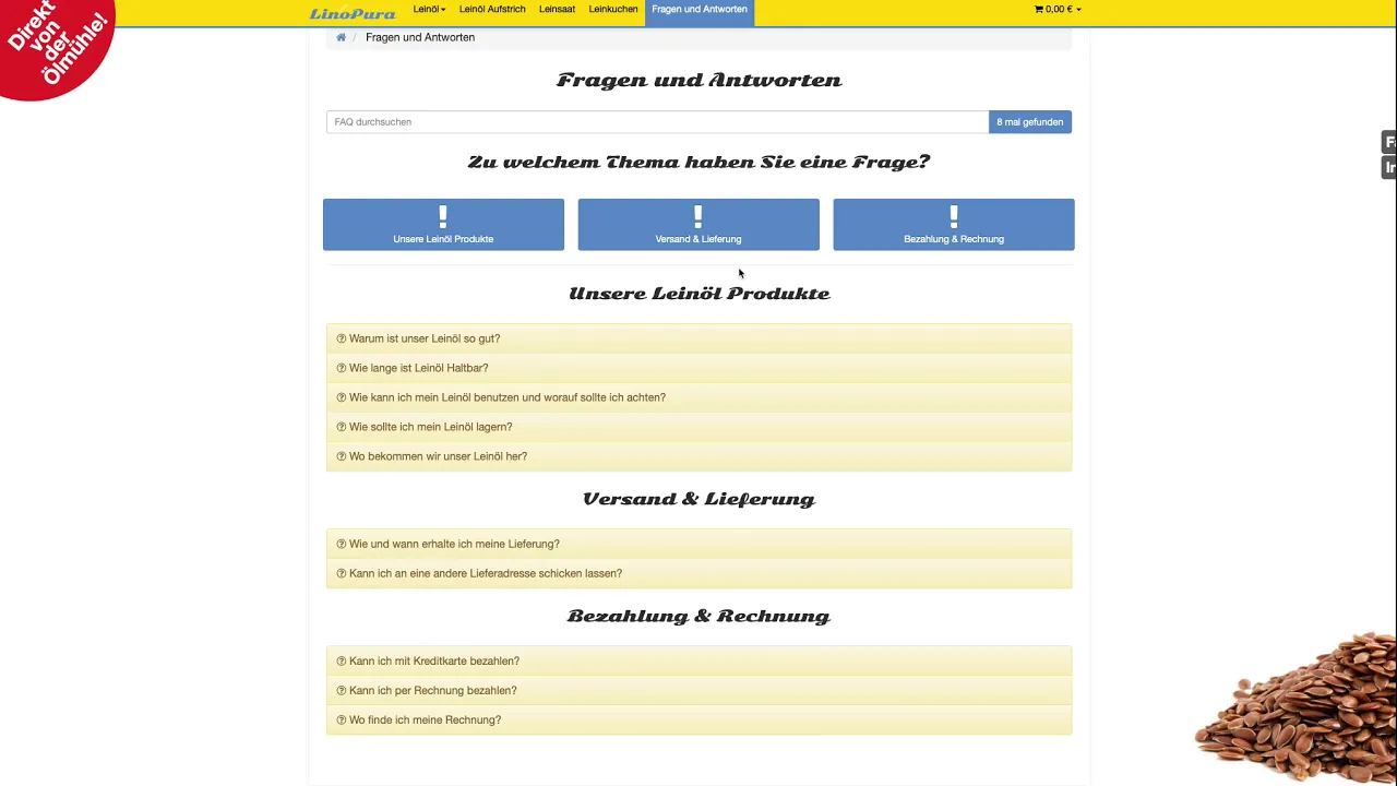 - Erstellt eine zentrale FAQ-Seite im Shop