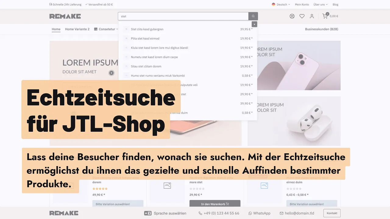 Das Plugin bietet eine schnelle Suchfunktion in Echtzeit für Artikeln und arbeitet mit den Shop-Funktionen zusammen.